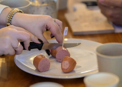 En 2025, plus de 75 dégustateurs ont évalué 128 cervelas, servis chauds et froids, selon une grille d’évaluation spécialement conçue pour l’événement. Chaque cervelas a été jugé selon des critères visuels, olfactifs et gustatifs, avec une attention particulière portée à la texture et à l’équilibre des saveurs.