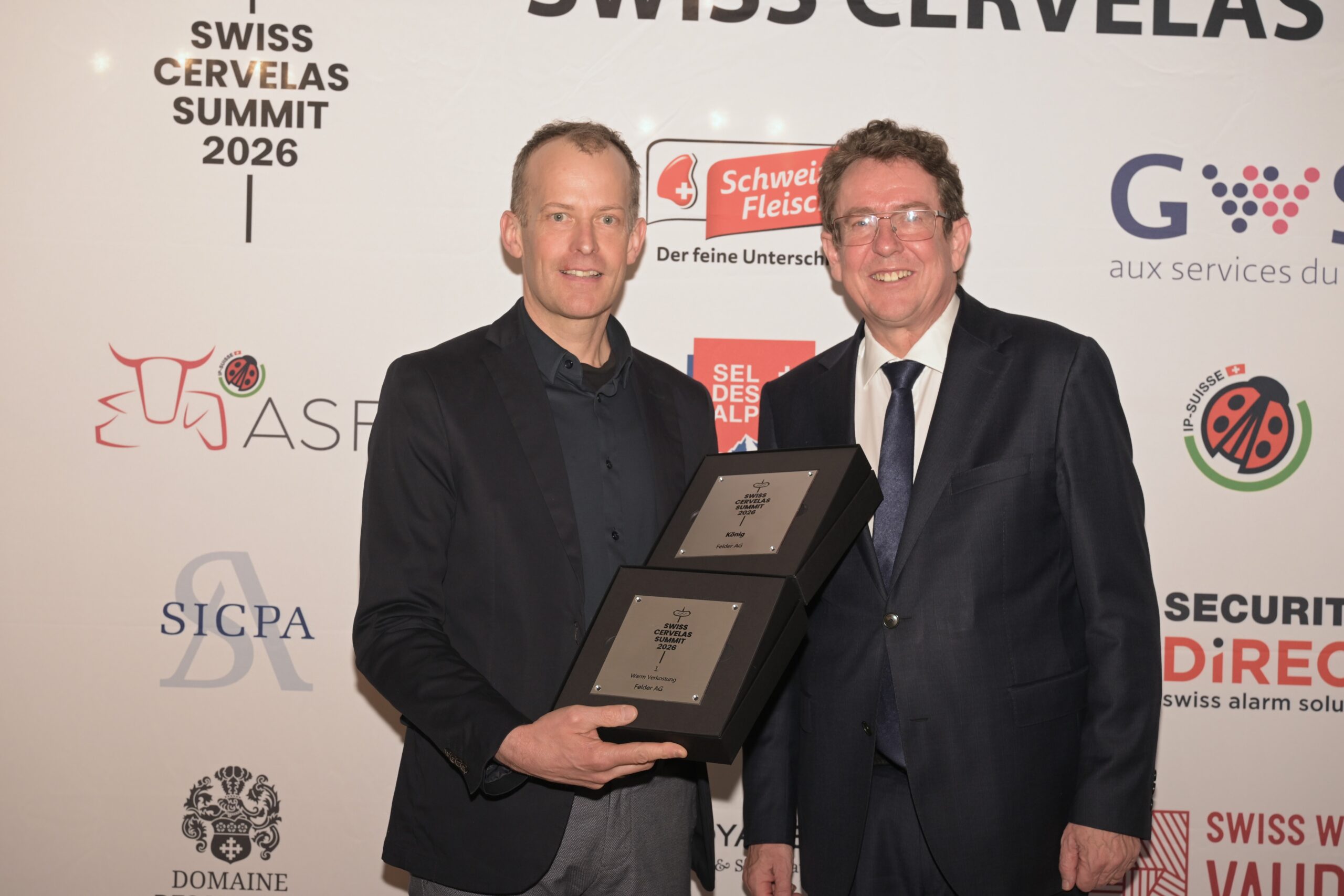 Photo du vainqueur du trophée Roi, Marcel Felder (à gauche) et Monsieur le Conseiller fédéral Albert Rösti (à droite)